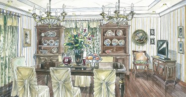 Интерьерная графика Сергея Саргина выполнена рукой художника. Мы видим и чувствуем элегантность и изысканность этих интерьеров. Они наполнены уютом и теплом. В них хочется жить.