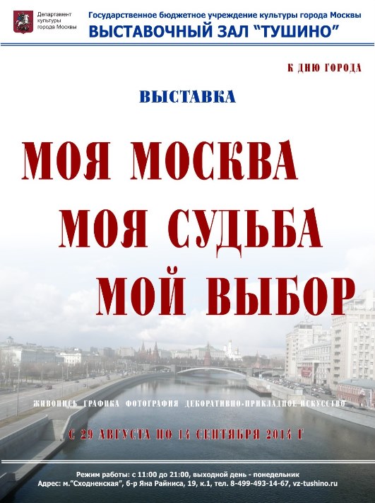 6 сентября в 15:00 в День города в Выставочном зале «Тушино» пройдет торжественное открытие выставочного проекта «Моя Москва. Моя судьба. Мой выбор», посвященного празднованию Дня города и выборам в Московскую городскую Думу, которые состоятся 14 сентября.