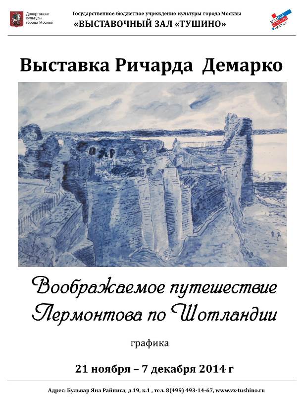 Ричард Демарко – шотландский художник, галерист, профессор Университета Кингстон в Лондоне – ведет активную художественную деятельность в Великобритании и за ее пределами. На протяжении многих лет он занимается перекрестными проектами, представляя шотландских художников в Европе. Подобным проектом является выставка «Воображаемое путешествие Лермонтова по Шотландии», на которой представлены собственные работы, акварели, Ричарда Демарко. Данная выставка – размышления художника на тему паломничества великого поэта на родину своих предков, древнего шотландского рода Лермонт. Ричард вдохновился трудами Вальтера Скотта, особенно историей о шотландце Фоме Рифмаче, легендарного героя и исторического персонажа.
