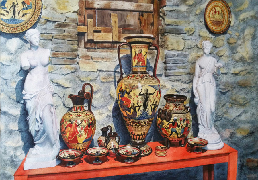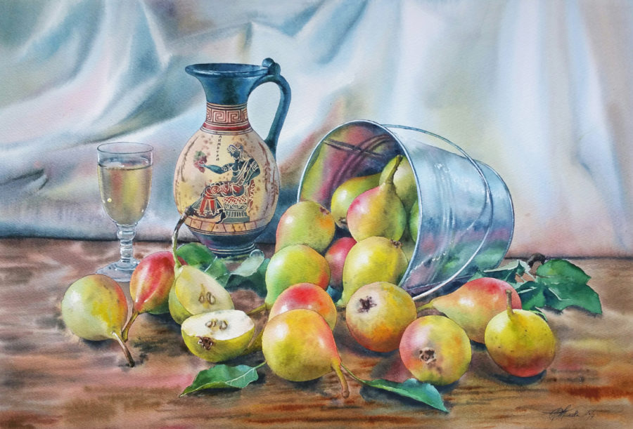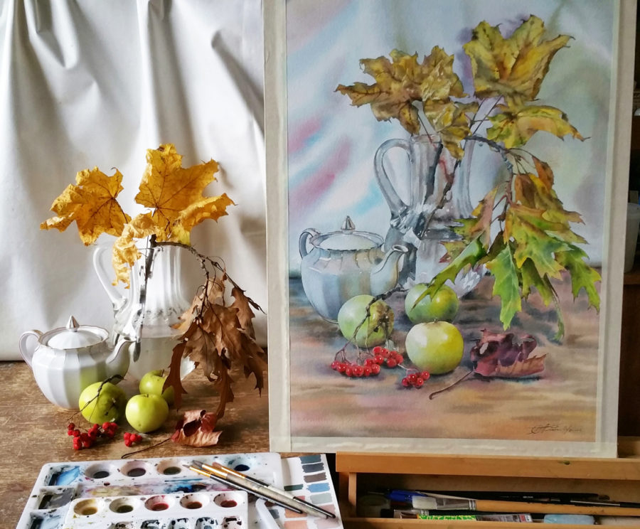 Мои ранние акварельные работы выполнены в классической технике многослойной акварельной живописи (лессировка). Этот прием заключается в нанесении нескольких очень тонких слоев краски поверх уже высохшего слоя, благодаря чему можно добиться высокой детализации предметов.