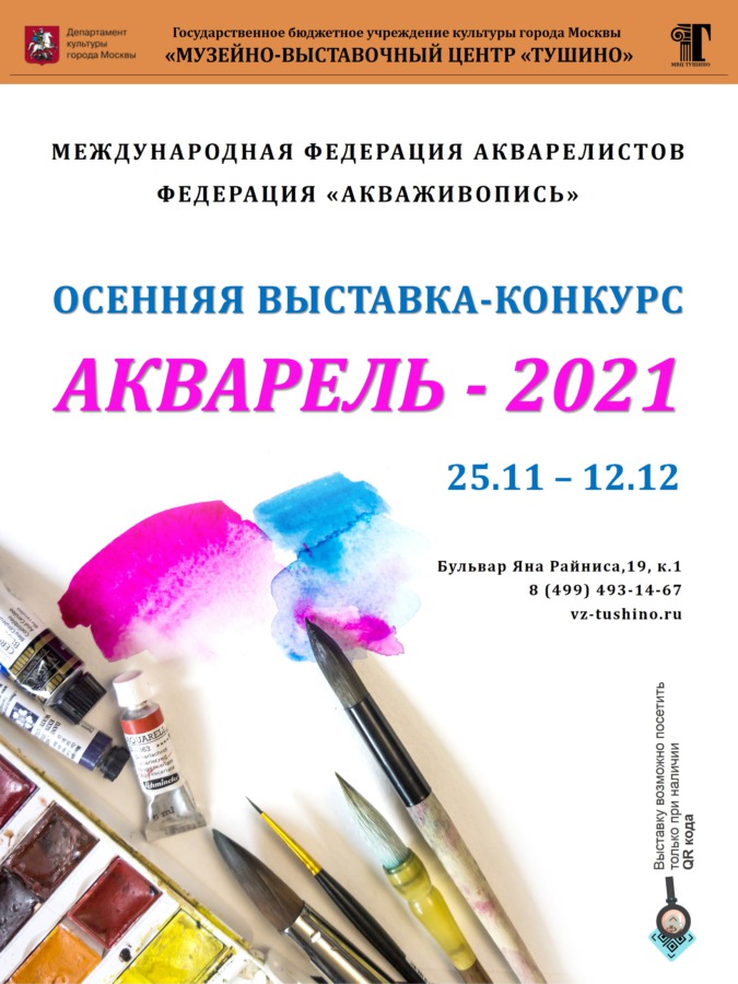 Музейно-выставочный центр «Тушино» и Международная федерация «Акваживопись» представляют ежегодную осеннюю выставку-конкурс «Акварель-2021».