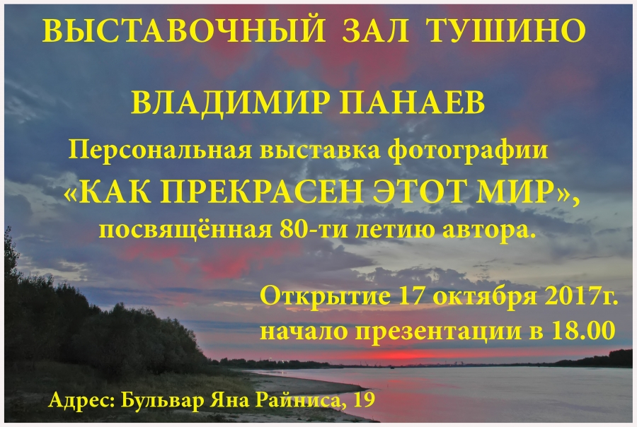 Выставки • Новости 17.10 — 18.10.2017г — Персональная юбилейная фотовыставка. Владимир Панаев «Как прекрасен этот мир»